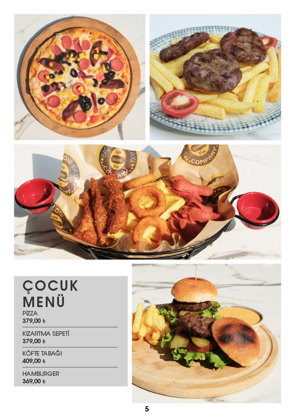 ÇOCUK MENÜ PİZZA 149,00 KIZARTMA SEPETİ 119,00 KÖFTE TABAĞI 159,00 HAMBURGER 139,00 5